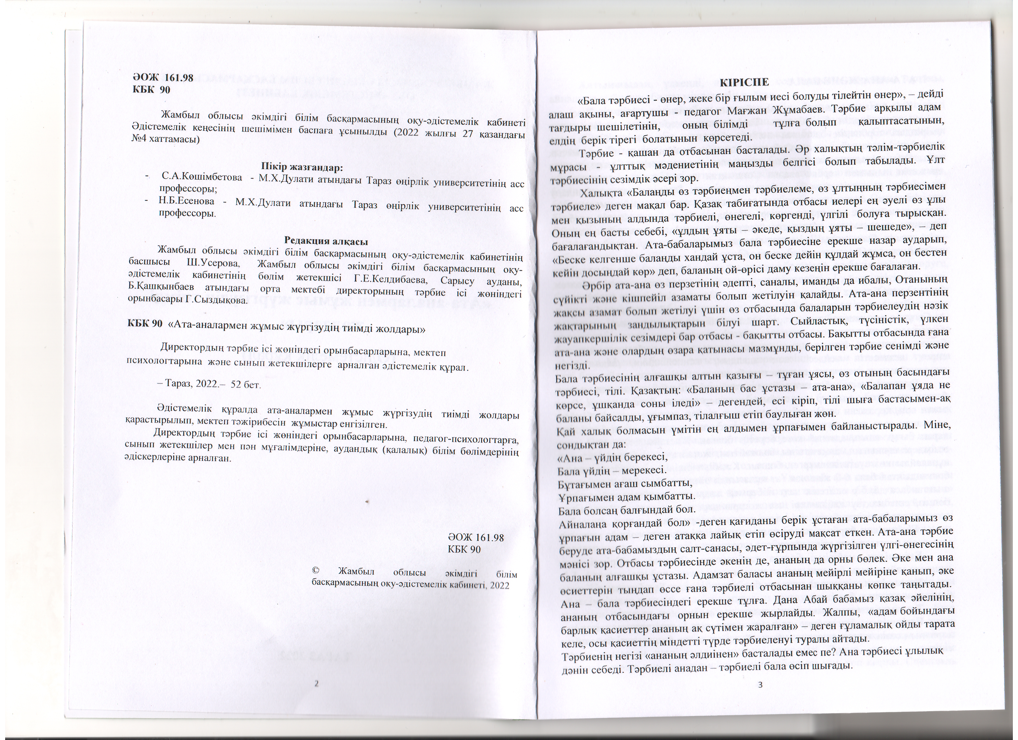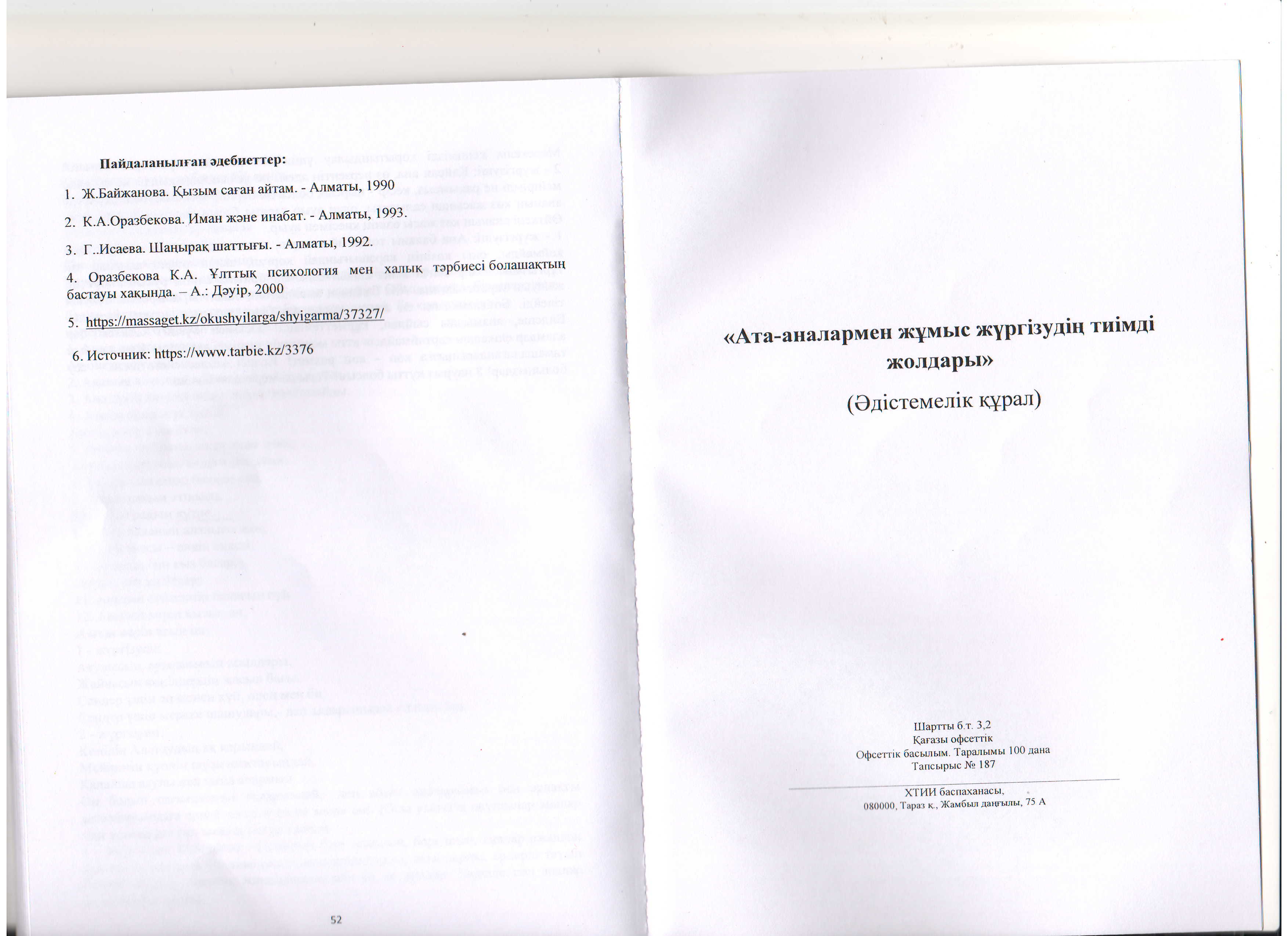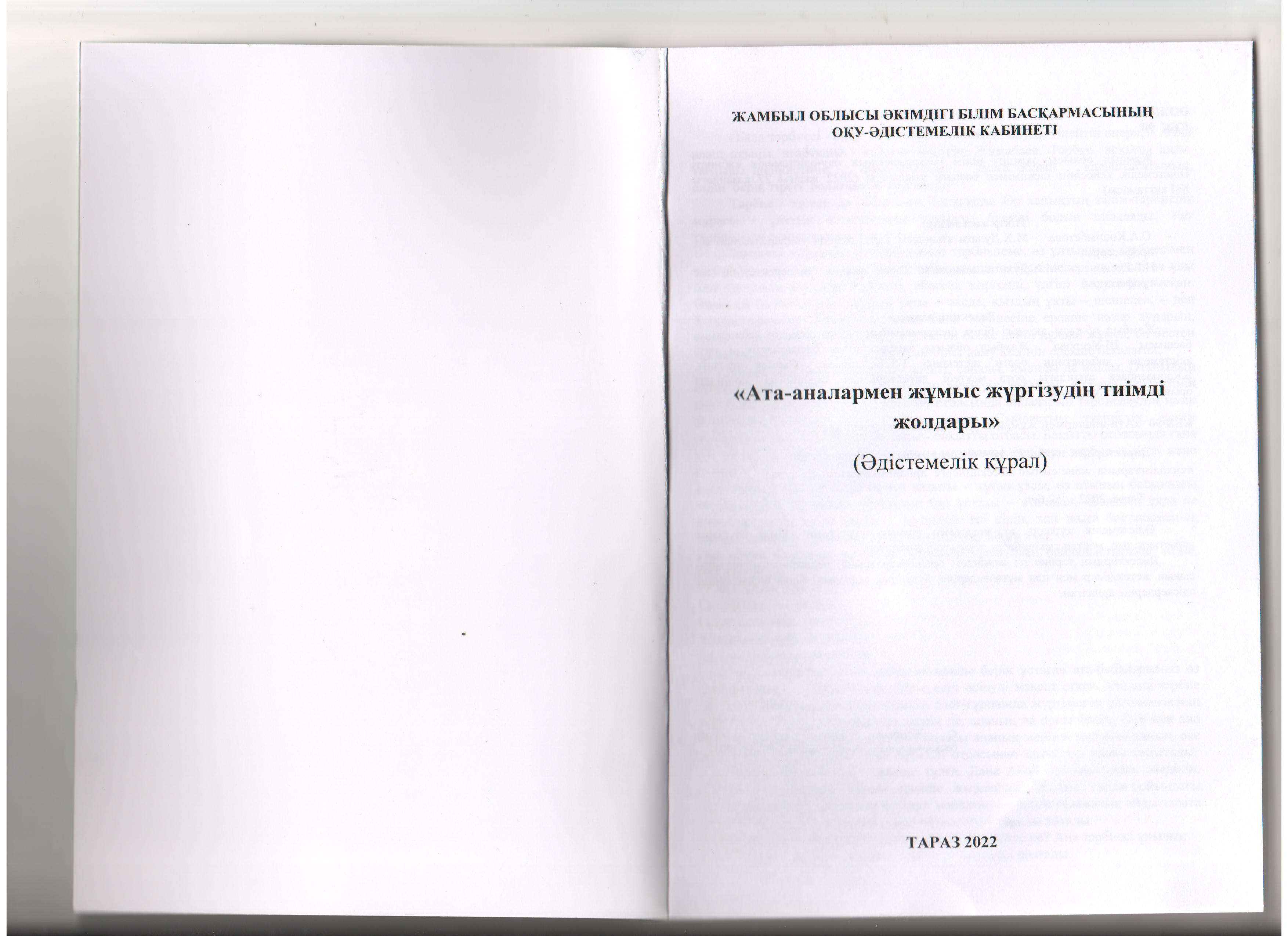 " Ата- аналармен жұмыс жүргізудің тиімді жолдары" әдістемелік құрал. » Жамбылская область Сарысуйский районс.Саудакент сш. им. Байкадама Кашкинбаева