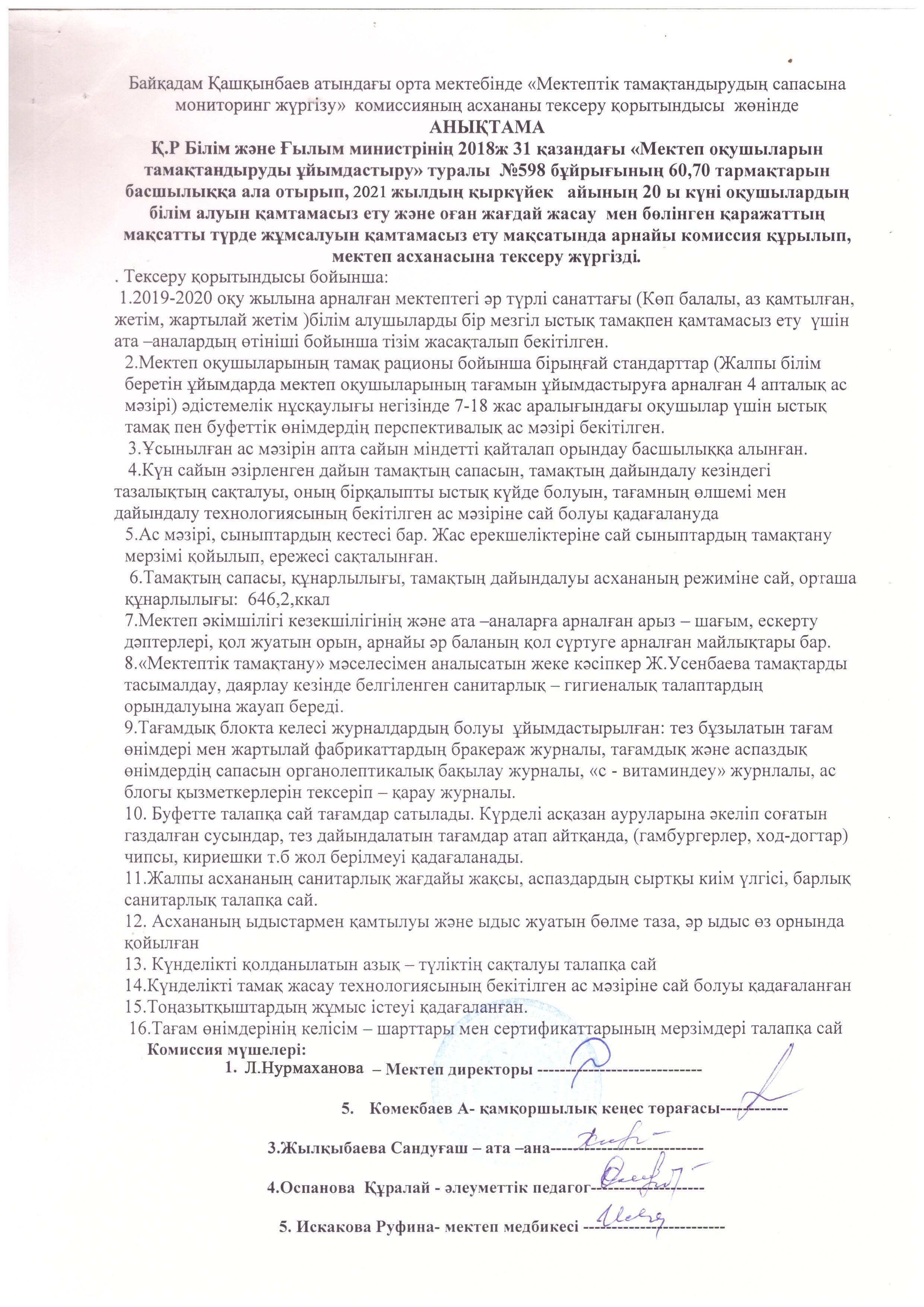 Мектептегі бір мезгі ыстық тамақтың мониторингісі. » Жамбылская область Сарысуйский районс.Саудакент сш. им. Байкадама Кашкинбаева