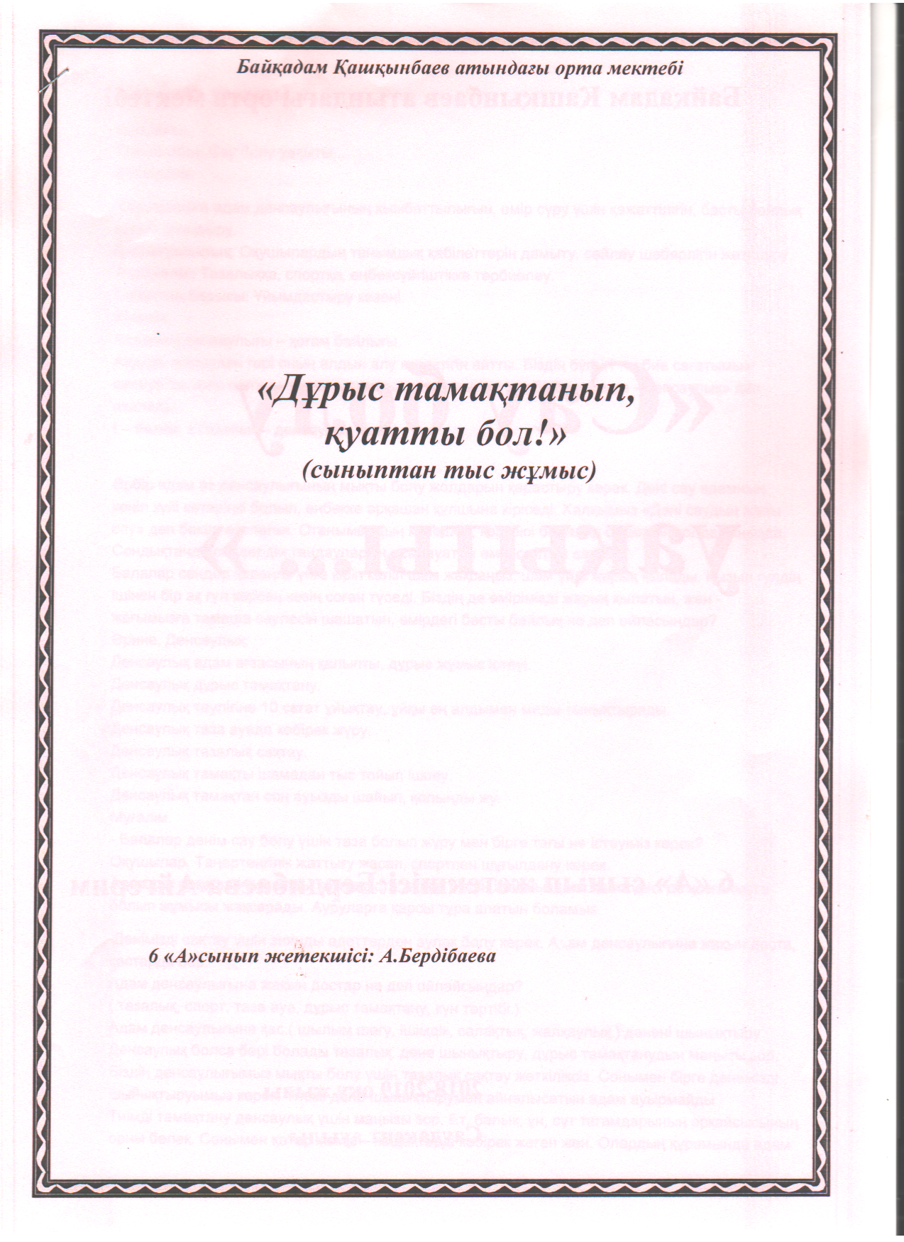 Дұрыс тамақтанып қуатты бол! » Жамбылская область Сарысуйский районс.Саудакент сш. им. Байкадама Кашкинбаева