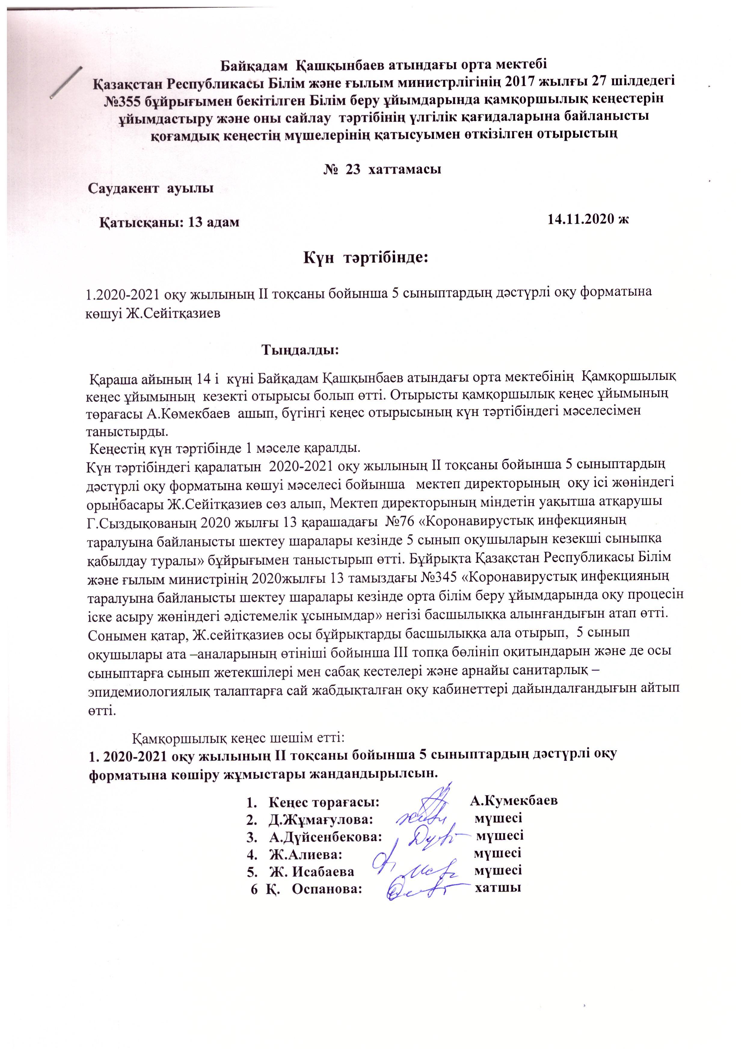 Қамқоршылық кеңес отырысының № 23 хаттамасы » Жамбылская область Сарысуйский районс.Саудакент сш. им. Байкадама Кашкинбаева