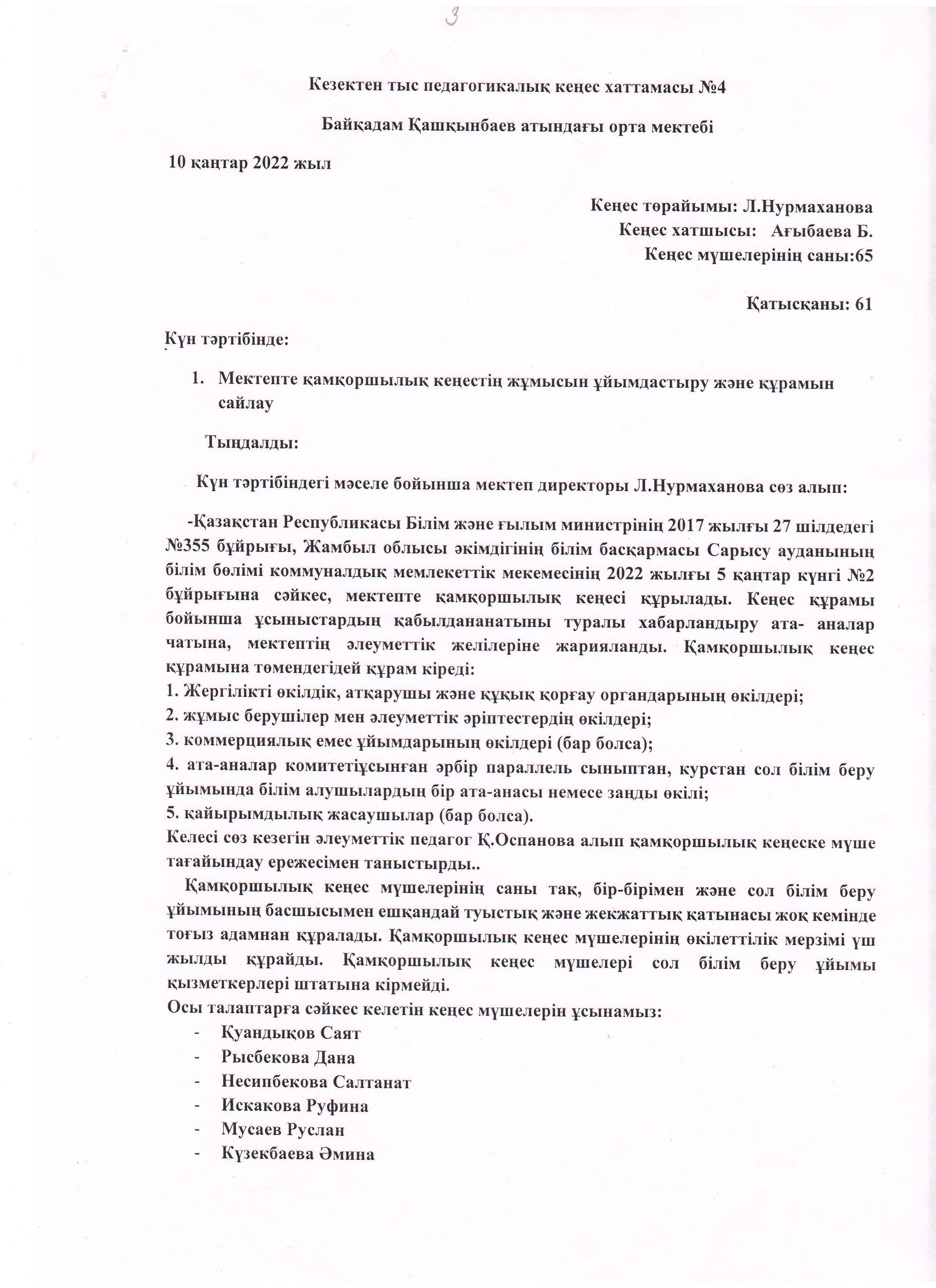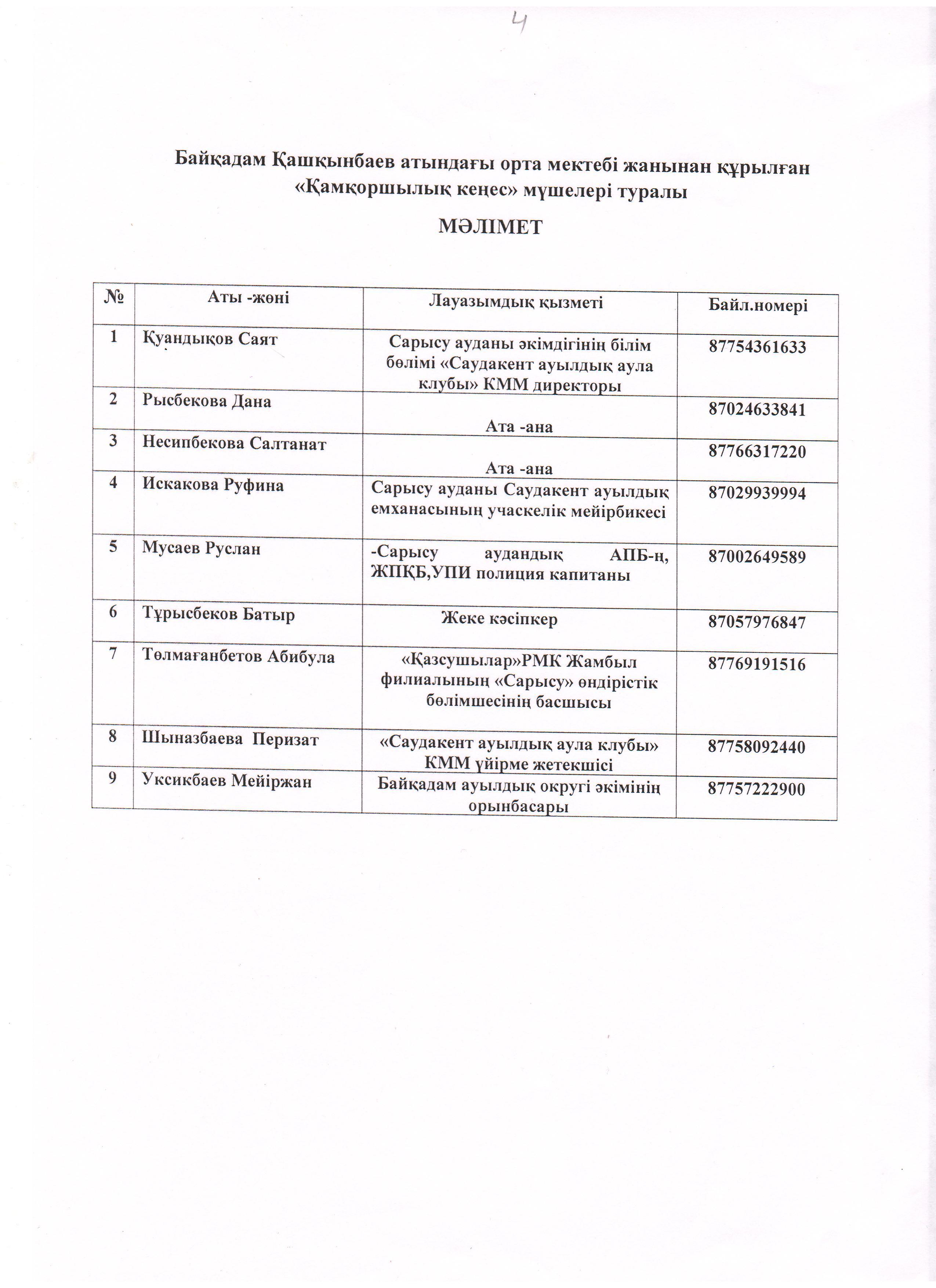 Қамқоршылық кеңес жұмыстары. » Жамбылская область Сарысуйский районс.Саудакент сш. им. Байкадама Кашкинбаева