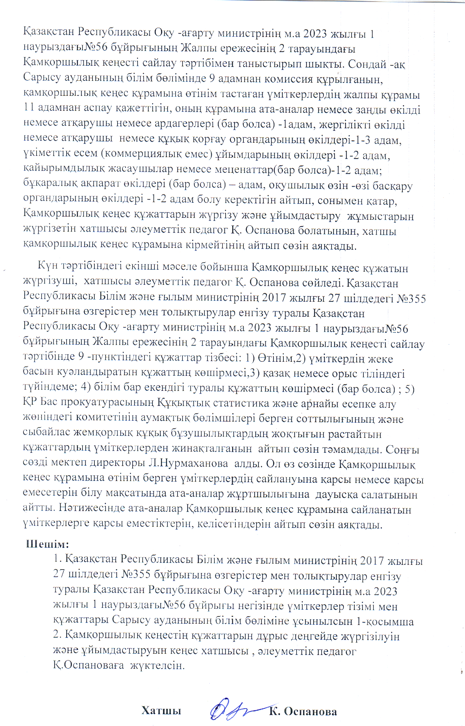 Қамқоршылық кеңес отырысы өтті. » Жамбылская область Сарысуйский районс.Саудакент сш. им. Байкадама Кашкинбаева