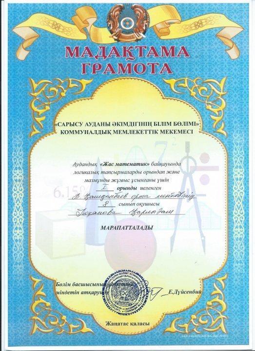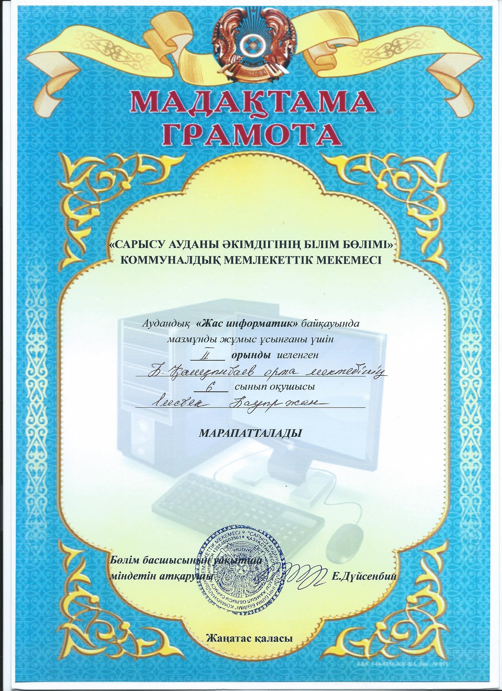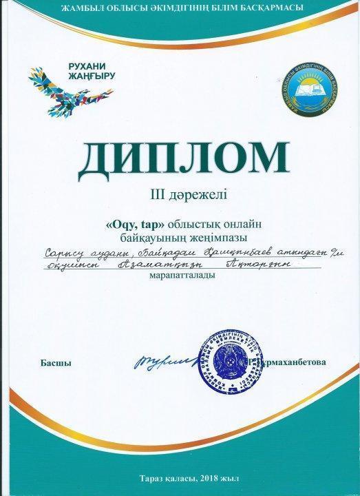 Оқушыларымыз жүлдемен оралды. » Жамбылская область Сарысуйский районс.Саудакент сш. им. Байкадама Кашкинбаева