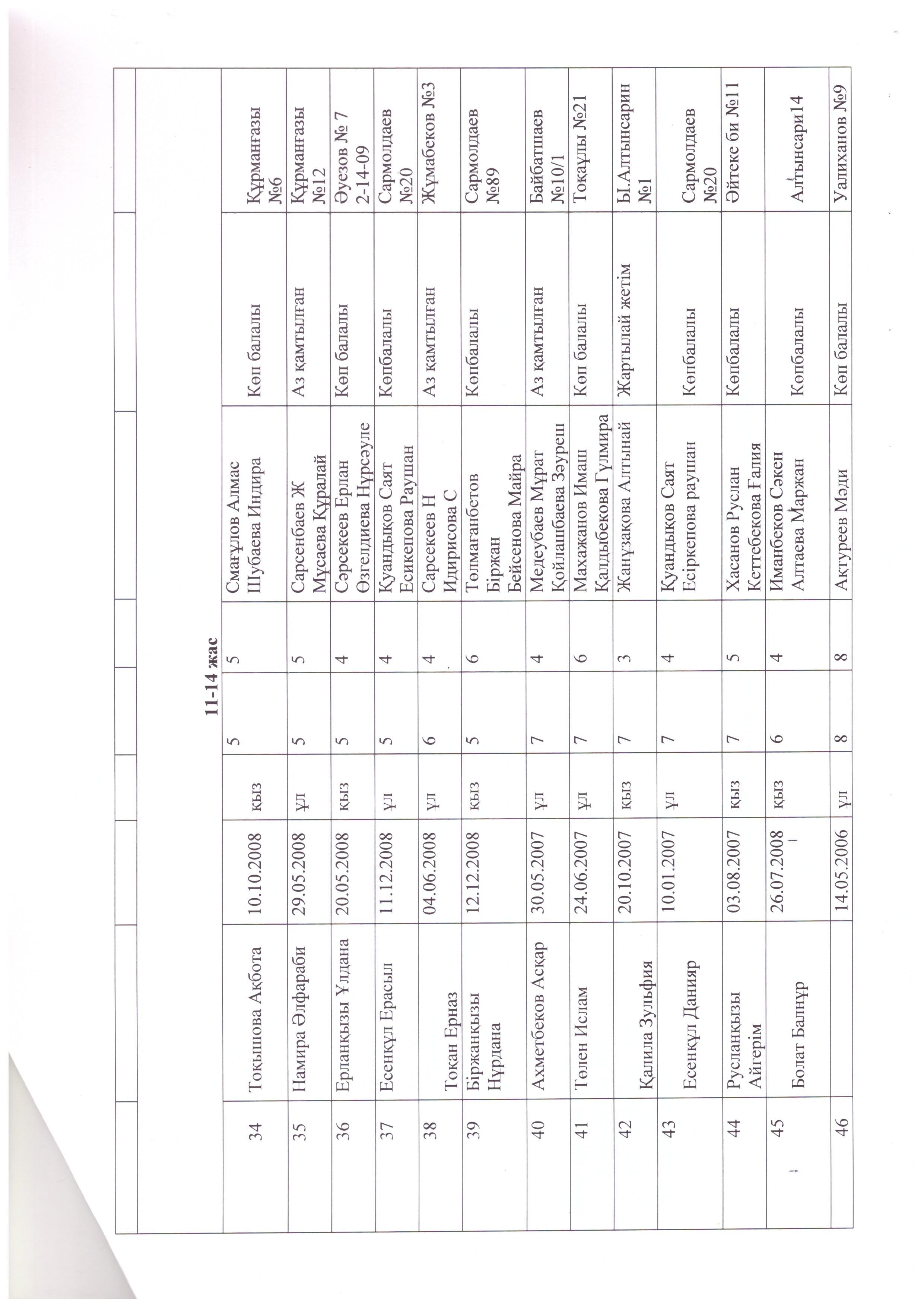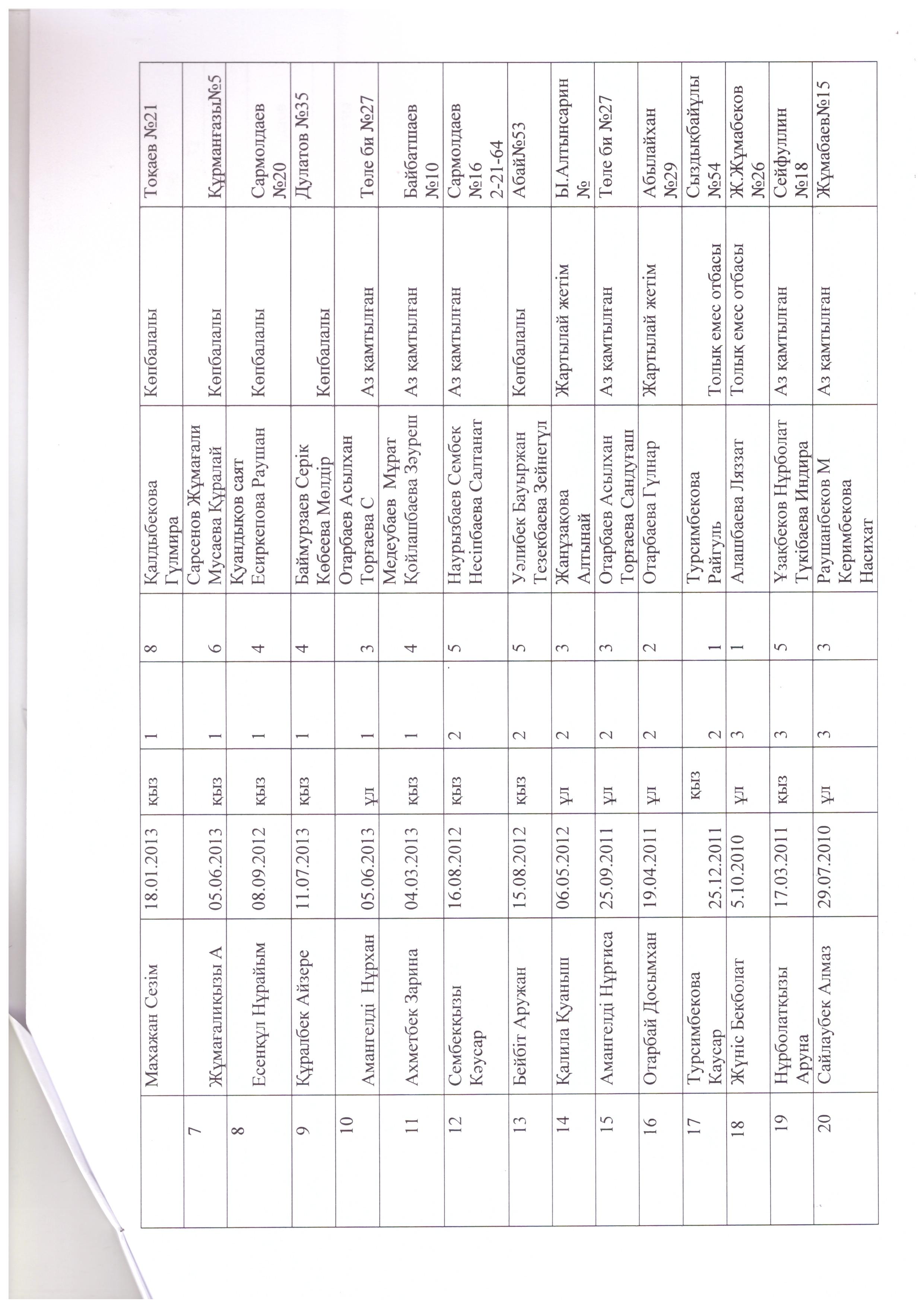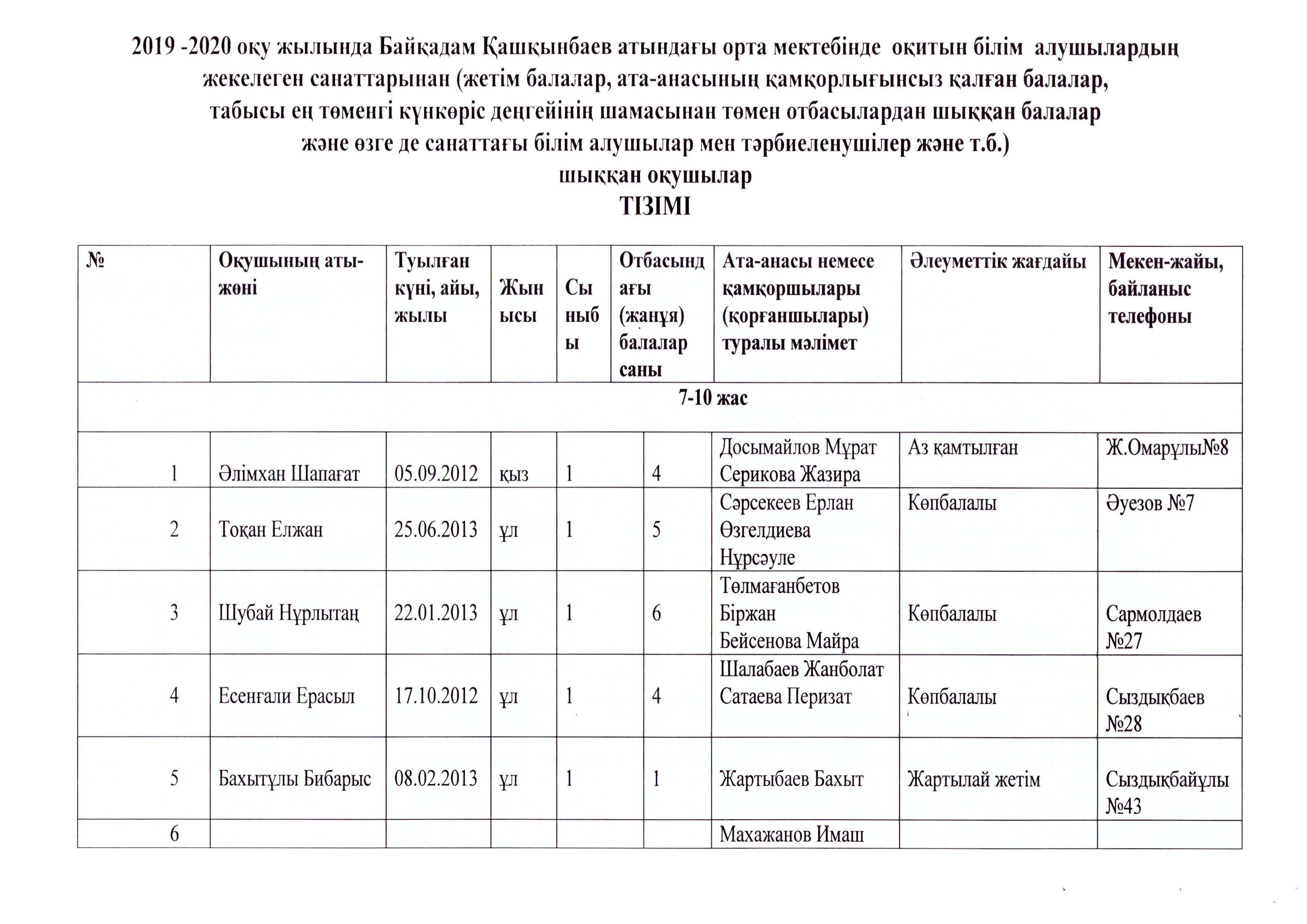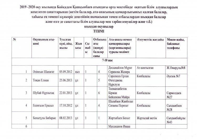 09 январь 2020 0 1 2 3 4 5 Б.Қашқынбаев атындағы орта мектебі бойынша ыстық тамаққа қамтылған оқушылар тізімі